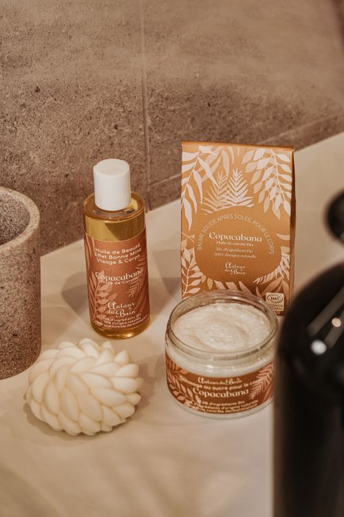 Idéale pour découvrir la gamme COPACABANA ou glisser dans son bagage cabine, cette trousse en coton est composée de 3 produits